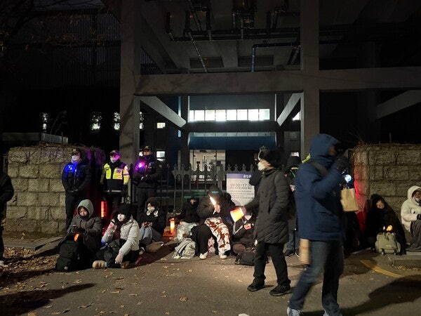 Alrededor de las 7 p.m., cuando circuló la noticia de que los legisladores del Partido del Poder Popular estaban intentando escapar trepando el muro de la Asamblea Nacional, los estudiantes universitarios corrieron y rodearon el muro de la Asamblea Nacional. También se observó colaboración entre sí, diciendo: "La Universidad de Mujeres de Seúl bloqueó la pared frontal. La Universidad de Mujeres Ewha estará a cargo de este lado a este, así que estudiantes de la Universidad Sungkonghoe, por favor vayan por ese lado".